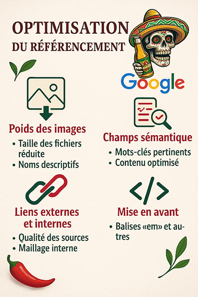 Apparemment invisible sur le site à première vue, de nombreuses tâches sont effectuées pour que Google référence votre site dans la première page sur les mots clés qui vous intéresse, par exemple: "restaurant de burger à Monflanquin".